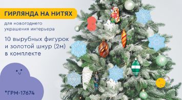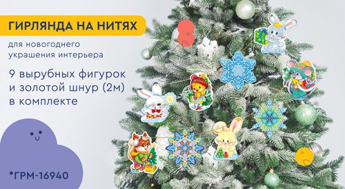 Гирлянда на нитях. Новогодние игрушки-3 (10 фигурок + золотой шнур 2 м)