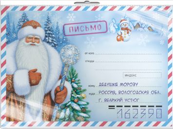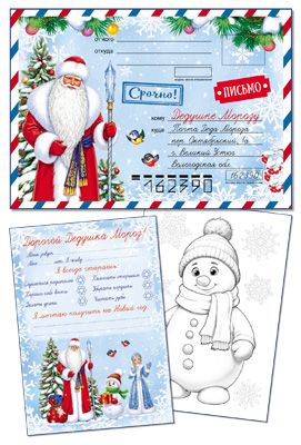 Письмо Дедушке Морозу в почтовом конверте (конверт, письмо с текстом и раскраской на обороте)