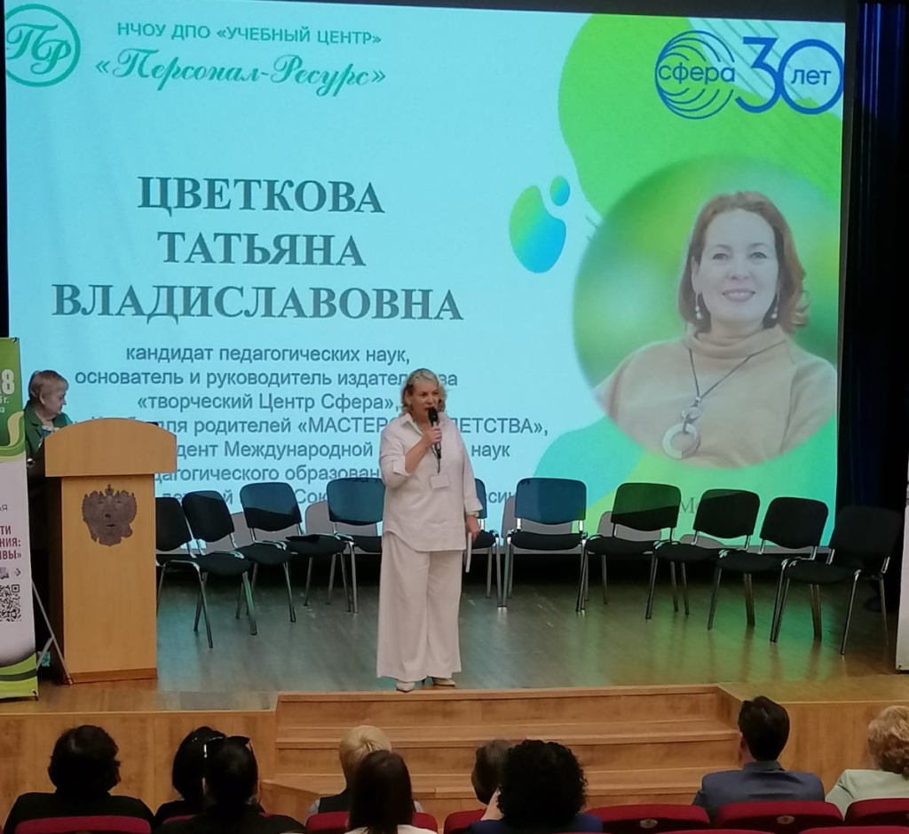 Основатель и руководитель издательства «Творческий Центр СФЕРА» Татьяна Цветкова выступила с докладом «Как родителям организовать семейное чтение и влюбить ребёнка в книгу», в котором представила практические методики формирования читательского интереса у детей. В своем выступлении она раскрыла современные подходы к организации семейного чтения, поделилась эффективными приемами выбора литературы для разных возрастных групп и рассказала о создании благоприятной среды для развития любви к книгам.